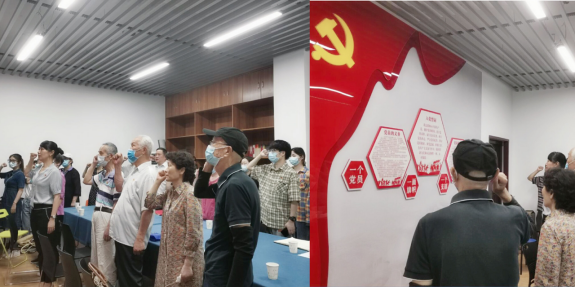 随后,全体党员面向党旗,举起右手,重温入党誓词,坚守入党初心。