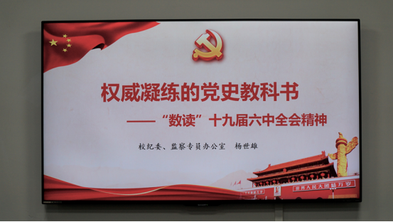 杨世雄以《权威凝练的党史教科书——“数独”十九届六中全会精神》为题,详细解读了中国共产党第十九届中央委员会第六次全体会议上审议通过的《中共中央关于党的百年奋斗重大成就和历史经验的决议(讨论稿)》(以下简称决议)。