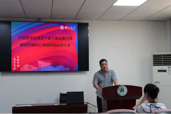 动员会上,刘建伟传达了《湖北大学关于推动党史学习教育常态化长效化的实施意见》和5月30日学校实践活动动员部署会有关精神,对《湖北大学人人摸人人看关于党员干部下基层察民情解民忧暖民心实践活动的实施方案》作了详细说明,并对学院实践活动进行全面部署和动员。