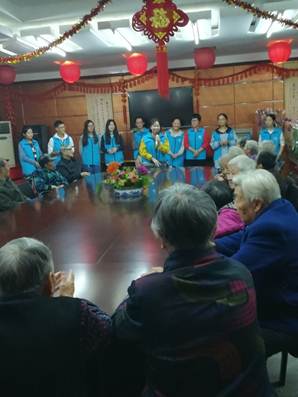 据了解,有一个志愿者用地道的武汉话介绍了自己,让现场的老人甚感亲切。除此之外,志愿者们的才艺秀老人极大地引起了老人的兴趣。由邓露和黄悦两个志愿者唱的“刘海砍樵”戏曲,引发了老人的共鸣。在唱戏的时候,老人们跟着节奏拍手,脸上也是满满的笑容,还有一位老人为在场的所有人唱了一出丑剧的戏段,引得老人们哈哈大笑,同时也向志愿者们传达了中国传统文化的韵味。