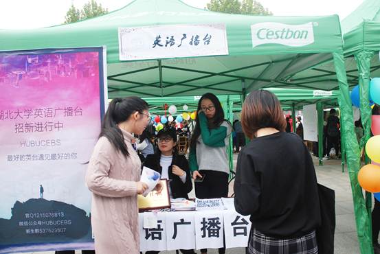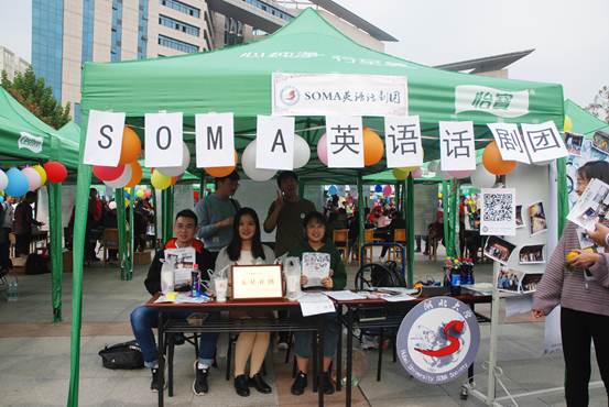 10月27日上午九点,湖北大学校本部的“百团大战”在图书馆前求索广场拉开帷幕,97个风格迥异的社团参加了此次的社团招新。其中包括人人摸人人看下属的四个社团——SOMA英语话剧团、樱花俱乐部、爱希美特法语协会和英语广播台。