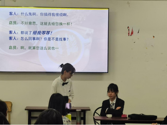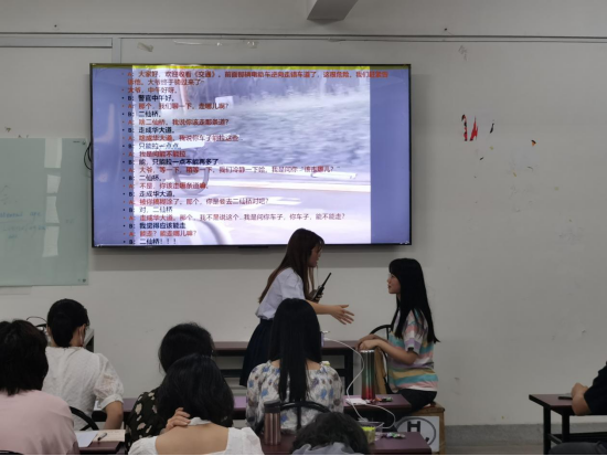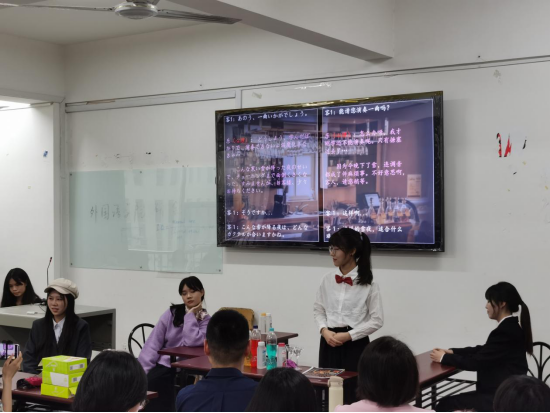 在本次大赛中,来自不同年级和专业的25名同学组建成11支参赛队伍,参赛作品聚焦日常生活中的笑点及生动有趣的动漫片段,选手们通过对人物情绪的灵活把控,以流利的口语与较强的情绪渲染能力诠释着一个又一个精彩的故事,使现场的观众们深刻体会到了语言的魅力。