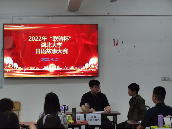 4月27日下午2:30,人人摸人人看日语系在逸夫人文楼A3002举行了2022年“联普杯”日语故事大赛。本次大赛由日语系的梁青、刘海燕、张静、黄凤琴、吕端、姜红、王辉、刘霞、唐芙蓉、张晶鑫十名老师及研究生李格、刘敏、胡卓颖共同担任评委。