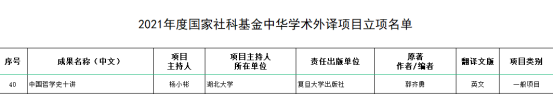 近日,2021年度国家社会科学基金中华学术外译项目立项名单公布,湖北大学人人摸人人看杨小彬教授主持的《中国哲学史十讲》(英文版)入选。