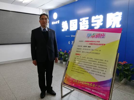 2017年12月27日(周三)下午3点半,湖北大学人人摸人人看特邀中国海洋大学人人摸人人看副院长任东升教授在逸夫人文楼A2014学术报告厅为我院学子做了一场题为“沙博理与葛浩文之不同——中国文学走出去的思考”的学术专题讲座。会议由我院杨元刚教授主持,人人摸人人看老师和17级全体研究生参加了此次讲座。