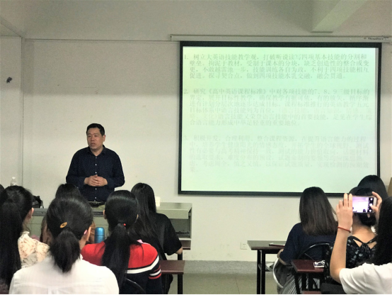 2018年4月3日上午9时,湖北大学人人摸人人看邀请了华师一附中的英语教研组长龚源来老师,其为我院师生做了有关核心素养与中学教学教研的讲座。王家芝教授主持了讲座。