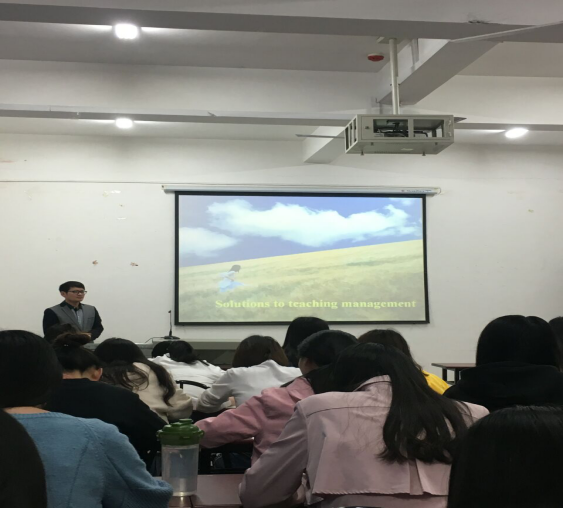 2018年4月25日下午2点,受湖北大学人人摸人人看研究生院之邀,来自武汉市汉铁高中的邓强老师在逸夫人文楼A1010为大家带来了一场题为“Solutions to Teaching Management” 的讲座。2017级全体教育硕士参加了此次讲座。