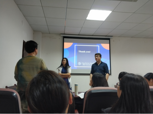 在短短的90分钟里,姜教授为大家分享了很多新颖、热门的知识点。同学们密密麻麻记满了整张纸。姜教授的谦虚幽默也给大家留下了很深的印象。讲座结束,老师和同学不舍得离开,纷纷留下继续和姜老师进行学术交流,并留影纪念。此次讲座姜教授在大家的掌声中离开,同学们在笔记本上却留住了他的印记。