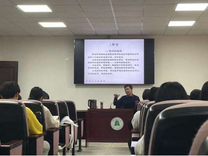 廖教授认为,隐喻的语篇或者话语功能研究,是当今国际隐喻研究的一个热点和发展方向,它正从孤立的、零散的、微观的个体隐喻研究,走向互相联系的、依托语境的、宏观的隐喻语篇研究。廖教授指出,复杂适应系统(CAS)理论主要包括宏观和微观两个方面,因其思想新颖且富有启发性,已经在许多领域得到广泛应用,推动着人们对复杂系统的行为规律进行深入探究。廖教授从问题出发,借鉴复杂系统理论,搭建了隐喻系统语篇建构和组织机制的分析框架,为在场师生们提供了一些研究的切入点。廖教授建议,在语篇阅读理解教学中,我们也可以从隐喻和隐喻系统的角度,欣赏语篇、分析语篇,从而准确把握作者的写作宗旨和意图。