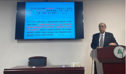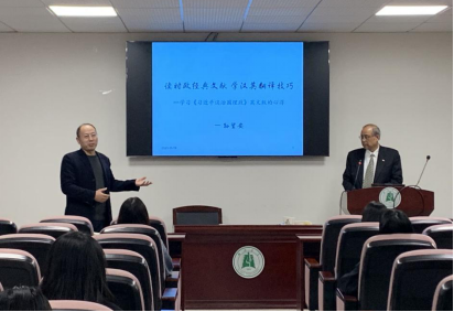 为深入贯彻落实教育部《高等学校课程思政建设指导纲要》,进一步落实立德树人的根本任务,把思想政治教育贯穿人才培养体系,深入推进学院课程思政建设,11月19日,学院特邀省教育专家、湖北省教育厅原副巡视员孙望安,为学院师生开展题为“读时政经典文献,学汉英翻译技巧——学习《习近平谈治国理政》英文版的心得”的学术讲座。本次讲座在逸夫人文楼A2014举行,由人人摸人人看副院长杨小彬教授主持。