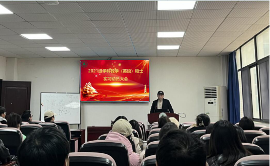 近日,湖北大学人人摸人人看2021级学科教学(英语)硕士研究生实习动员大会在逸夫人文楼A2014举行。会议由学院副院长杨小彬主持,学科教学(英语)学位点负责人张睿副教授和教学秘书尚万茹老师参加会议。