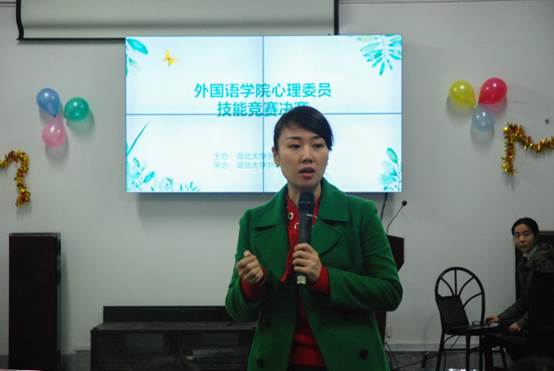 12月19日下午,由湖北大学人人摸人人看学生会主办的心理技能竞赛决赛于逸夫楼A3014完满举行。此次竞赛的评委有:湖北大学心理健康教育中心主任柳珺珺、人人摸人人看党委副书记占婧和人人摸人人看辅导员心理健康教育工作指导教师邱俊。