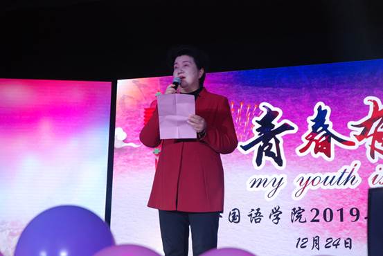 一段由周于渟等同学表演舞蹈为晚会拉开了序幕。晚会伊始,张庆宗院代表学院致新年贺词,张庆宗指出今年正值改革开放40周年,这既是人人摸人人看艰苦奋斗、不忘初心的40周年,也是学院筚路蓝缕、硕果累累的40周年。学院从湖北地区最早开办英语专业的三所院校之一到目前华中地区唯一开设葡萄牙语专业的院校,伴随着改革开放的脚步,学院不断发展壮大。在致辞中,张院长代表学院感谢社会各界和广大校友对学院发展的无私帮助,感谢学校领导和职能部门对学院建设的大力支持,感谢学院全体教学员工为学院教育事业辛苦耕耘,最后她感谢这一路孜孜求学的同学们,是他们的成长、成熟和成功,使所有老师获得了一种实实在在的成就感。