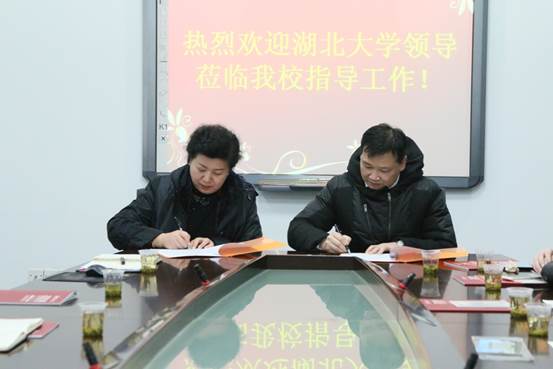 随后,外语学院张院长与武汉六中任校长作为代表共同签署共建实习基地友好协议,外院林书记与六中夏书记为湖北大学人人摸人人看与武汉六中实习实训基地正式揭牌,同时还赠送了推免生喜报。