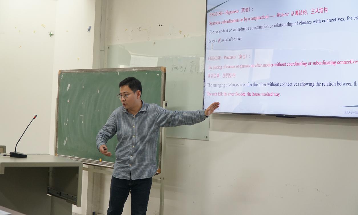翻译系吴术驰老师以“英汉语言对比”为教学内容,将两种语言中形合与意合的特点讲得深入浅出,通俗易懂,较好地贯彻了跨学科、人文性、语言技能和人文知识融合的课程设计思路。