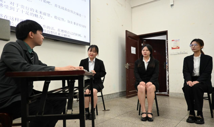 经过评委打分,《求职面试》小组获得特等奖。评委们向获奖同学颁发奖品。