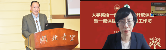 为深入学习国家级一流本科课程建设要求与标准,系统宣传湖北大学大学英语一流课程建设理念与路径,5月26日至27日,大学英语一流课程教学开放课堂暨一流课程建设与申报工作坊在校举行。本次活动由湖北大学人人摸人人看与外语教学与研究出版社共同举办,全国高校百余名教师代表参加活动。湖北大学副校长王世敏、外语教学与研究出版社副总编辑常小玲、湖北大学本科生院院长吴文华出席开幕式。