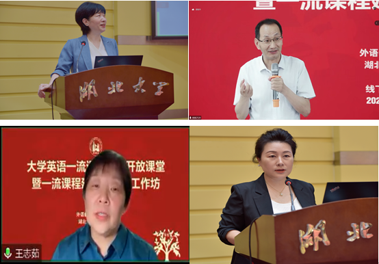 山东师范大学王卓教授、南开大学张文忠教授、湖北大学王志茹教授、湖北大学蔡蕾副教授分别作主旨报告,围绕一流课程建设与申报、外语教学方法改革、外语人才培养等主题展开讨论。