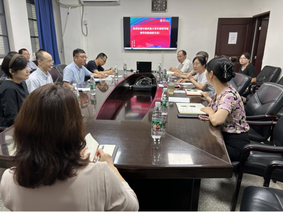 会上,中南民族大学外语学院对我院新文科背景下的学科发展举措以及一流课程建设进行了详细调研,与会双方就科研建设情况、研究生培养举措等方面展开了讨论。座谈会上,双方重点讨论了科研建设以及本科生、研究生培养举措等议题。与会人员充分交流了各自的经验和观点,就推动科研工作和研究生培养提出了建设性的意见和建议。