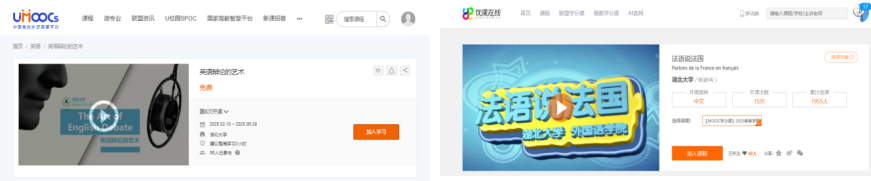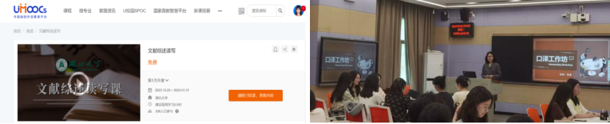 学院现建有外语专业类慕课28门,其中国家级一流课程3门、省级一流课程5门,先后上线“全国高校外语慕课平台”“优课联盟”“学银在线”“学堂在线”“智慧树”等多个慕课课程平台,其中“英语畅谈中国”是首门由中国慕课平台直接输出到国外平台的课程;3门课程6度斩获“基于 MOOC的混合式教学优秀案例”国家级、省级奖项,2门课程获批数字教材立项,1门课程获批知识图谱建设项目。