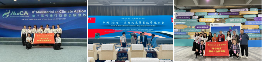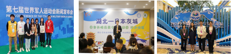 学生积极参加各级各类重大外事翻译活动,如第7届世界军人运动会、杭州第19届亚运会、湖北日报传媒集团笔译项目、湖北省科技厅中非创新论坛等;接待重要国际使团、代表团,如莫桑比克总理、牙买加、尼加拉瓜等国大使、法国驻武汉总领馆领事、日本长崎青少年文化交流团等。